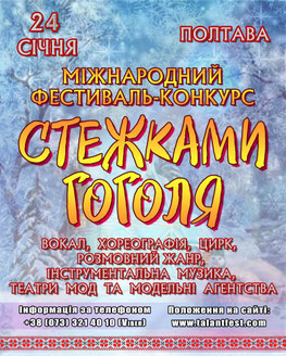 📢 Запрошуємо 24 січня 2026 року стати учасником міжнародного фестивалю-конкурсу мистецтв "Стежками Гоголя".