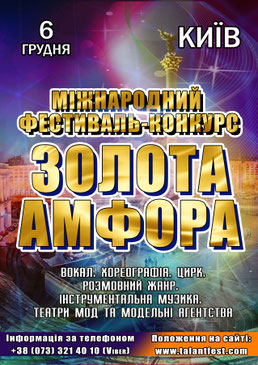 📢 Запрошуємо до 🔱 Києва 🔱 6 грудня 2025 року стати учасником міжнародного дистанційного фестивалю-конкурсу мистецтв "Золота амфора".